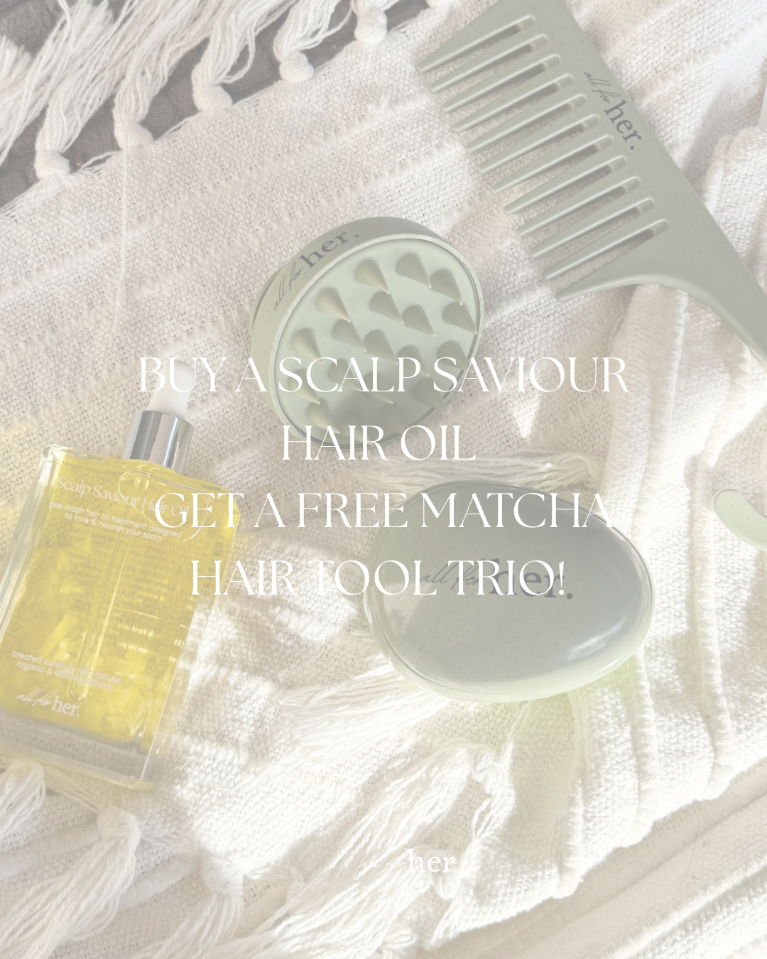 Purchase a Scalp Saviour Hair Oil and add the Ultimate Hair Tool Trio in Matcha to your cart and it will be FREE at checkout!